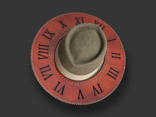 Wool Felt Outback Hat with Teca wood brim - Roman Numerals Clock