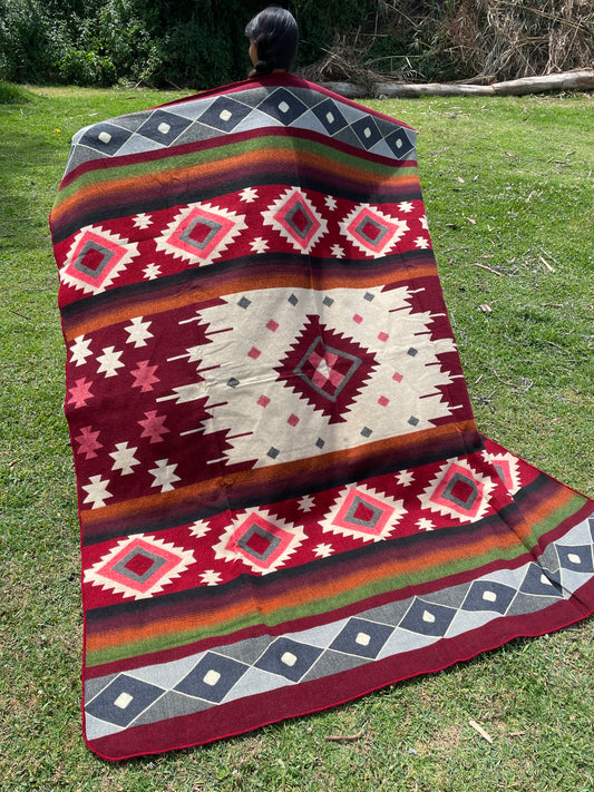 Alpaca Blanket with indigenous patterns - red