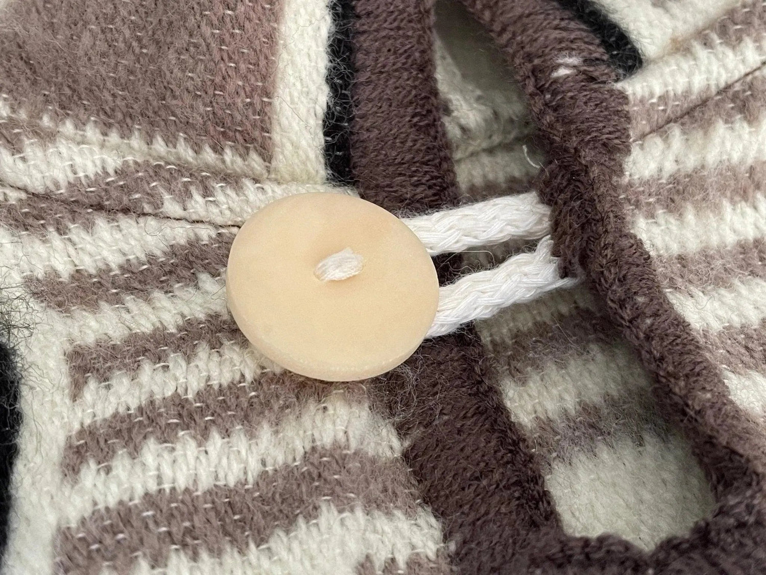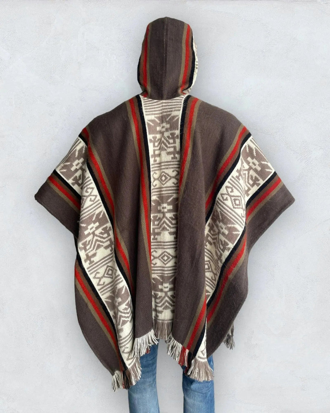 Wrap yourself in warmth and style with our handmade Andean-style hooded poncho! Featuring a cozy hood and a unique beige mocha color, this poncho is perfect for chilly days. Stay fashionable and comfortable with this must-have accessory!